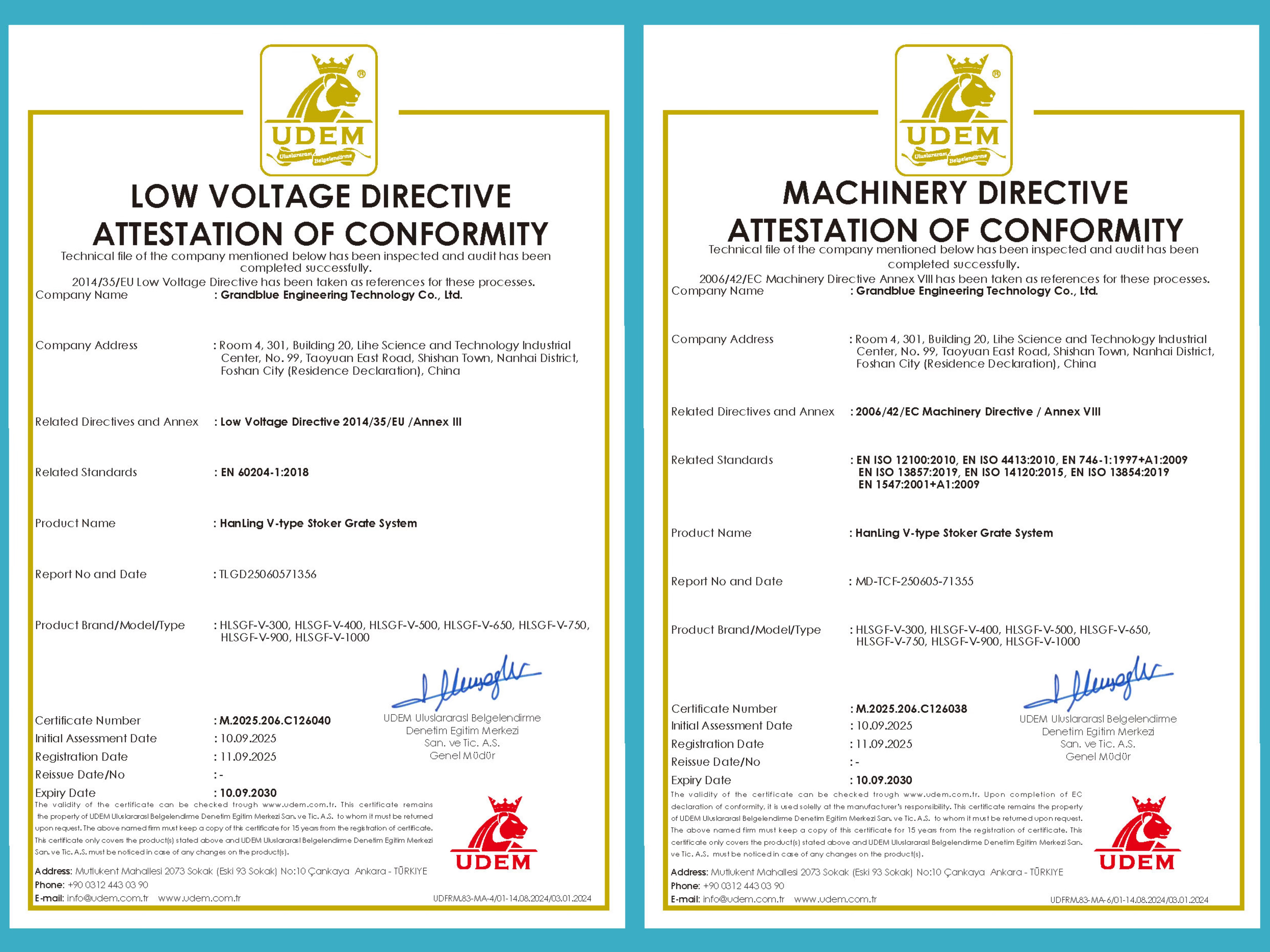 Grandblue Engineering Technology Co., Ltd. is proud to announce that its Hanling V-Type Incinerator, with a capacity range of 300–1000 t/d, has officially received CE certification from the European Union. This achievement not only affirms the product’s compliance with the EU’s rigorous standards but also grants it a vital entry pass to the European market.
