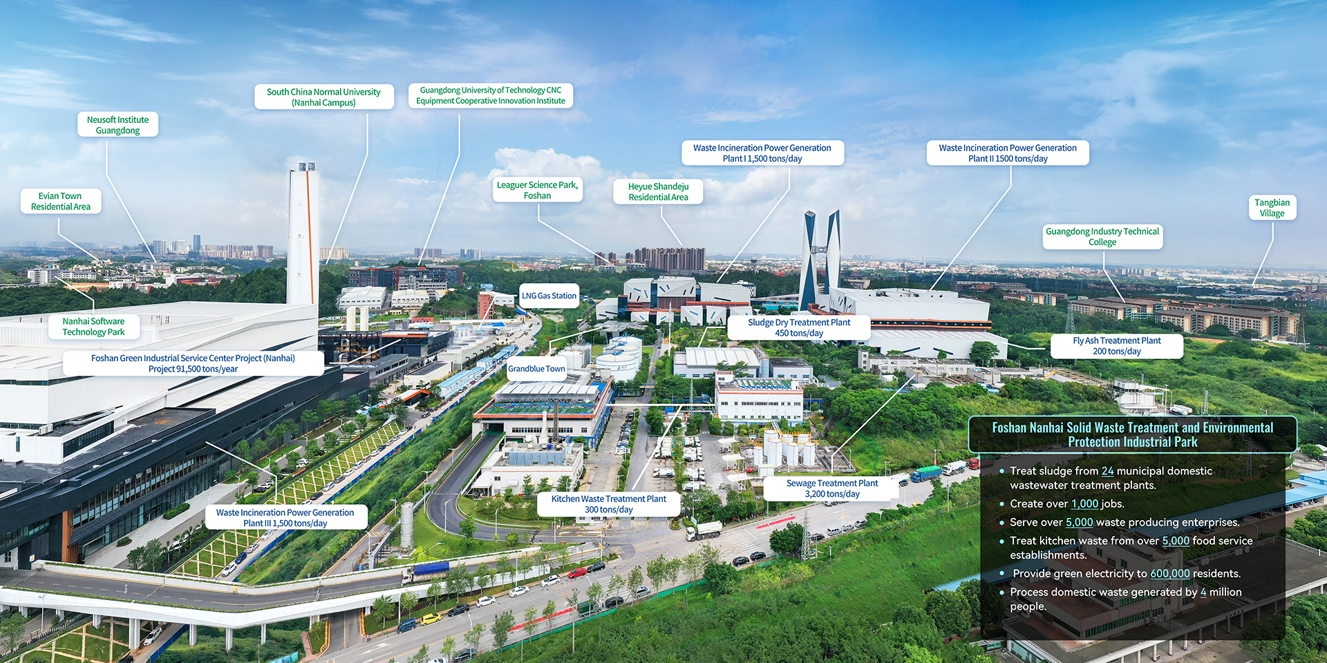 The first solid waste treatment and environmental protection industrial park that developed the "Grandblue Model" for organic co-processing of various types of solid waste. The Industrial Park successfully solved the urban garbage problem by minimizing the comprehensive cost to society and effectively solved the problem of NIMBYism, marking the first and by far the most mature and reputable collaborative solid waste treatment environmental industrial park in China, thereby receiving accolades from the domestic industry, government, and the public.