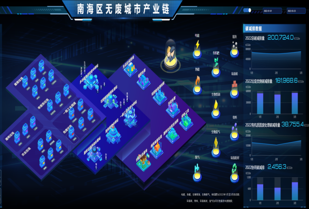 近年来,瀚蓝在各级政府的指导和支持下,对标“无废城市”建设要求,配合佛山市南海区探索构建“无废城市大脑”,充分融合管理数据和云上数据,实现各类固体废物信息互联互通,打造固废全生命周期数据智慧感知、全过程可视化跟踪与监管的平台,推动环境治理的经济效益和社会效益提升,助力减污降碳。