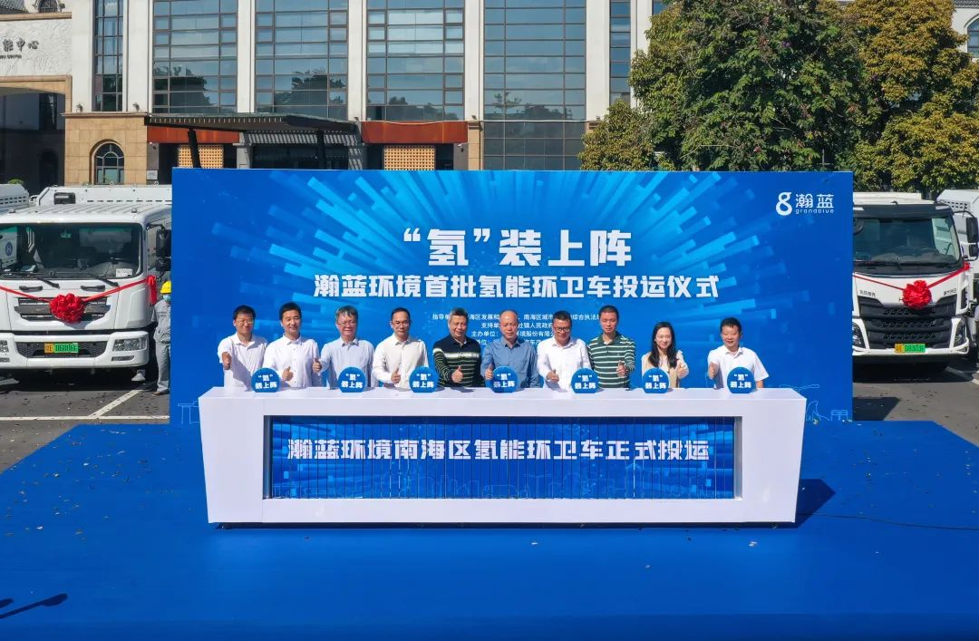 10月20日,南海首批氢能环卫车投运仪式在佛山南海氢能中心举行,南海区发改局副局长蔡德权、总经济师梁柱荣,南海区城管局总工程师邱伟健,丹灶镇党委副书记冼增强,丹灶市场监督管理所所长黄奕创,瀚蓝下属瀚洁城市环境管理有限公司总经理何超鸿等出席活动。