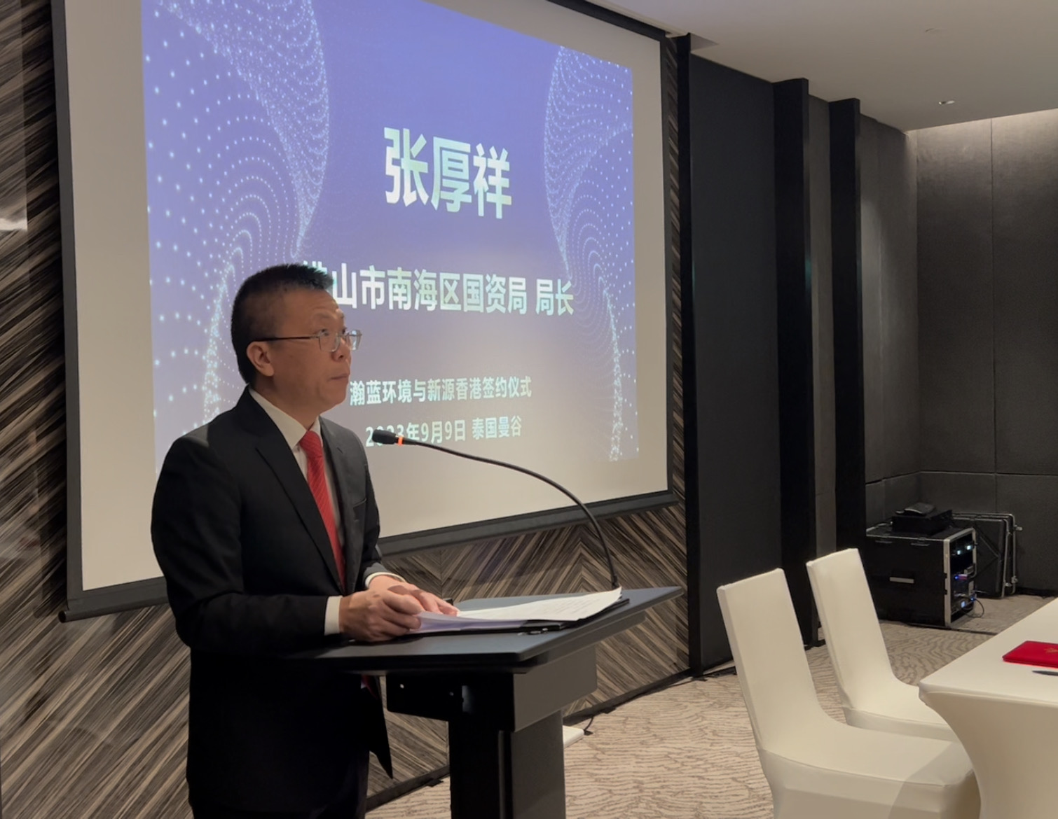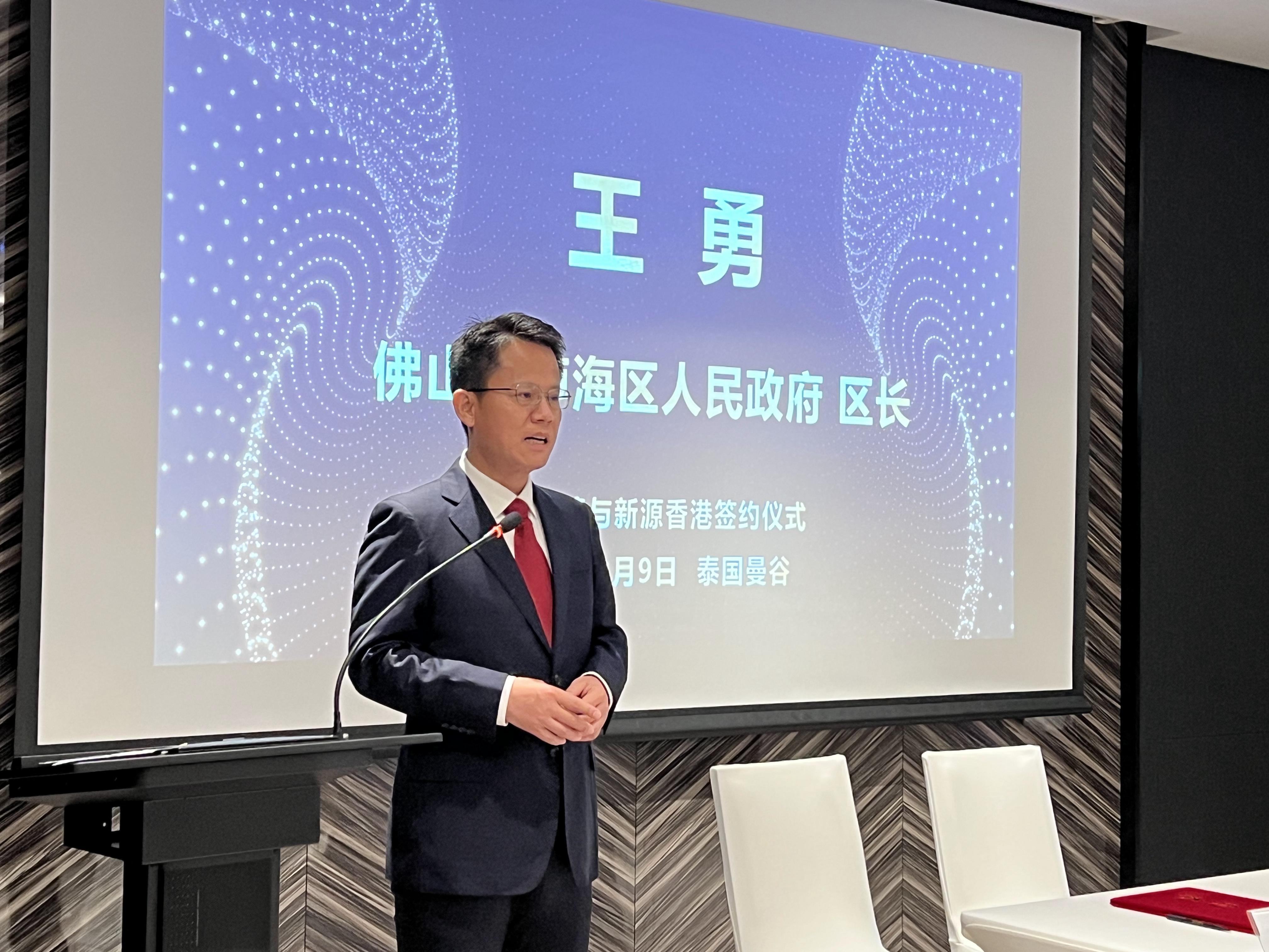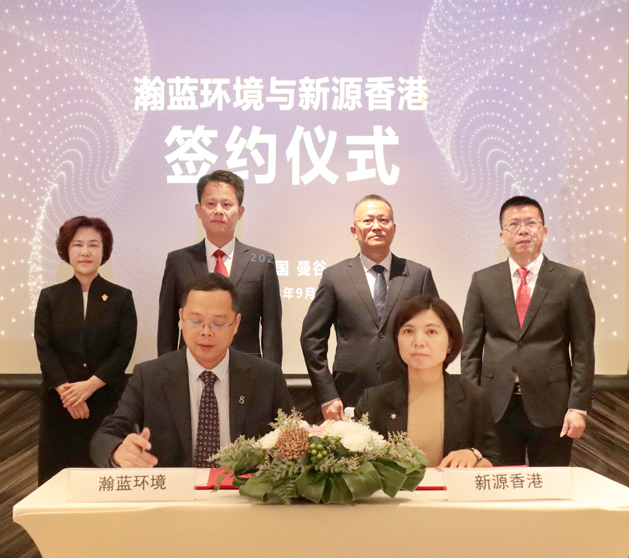 佛山市南海区区长王勇,佛山市南海区国资局长张厚祥,瀚蓝总裁金铎,新源中国总经理刘晓敏,新源香港董事林麗榕,以及南海经贸团一行企业家等出席并见证签约仪式。