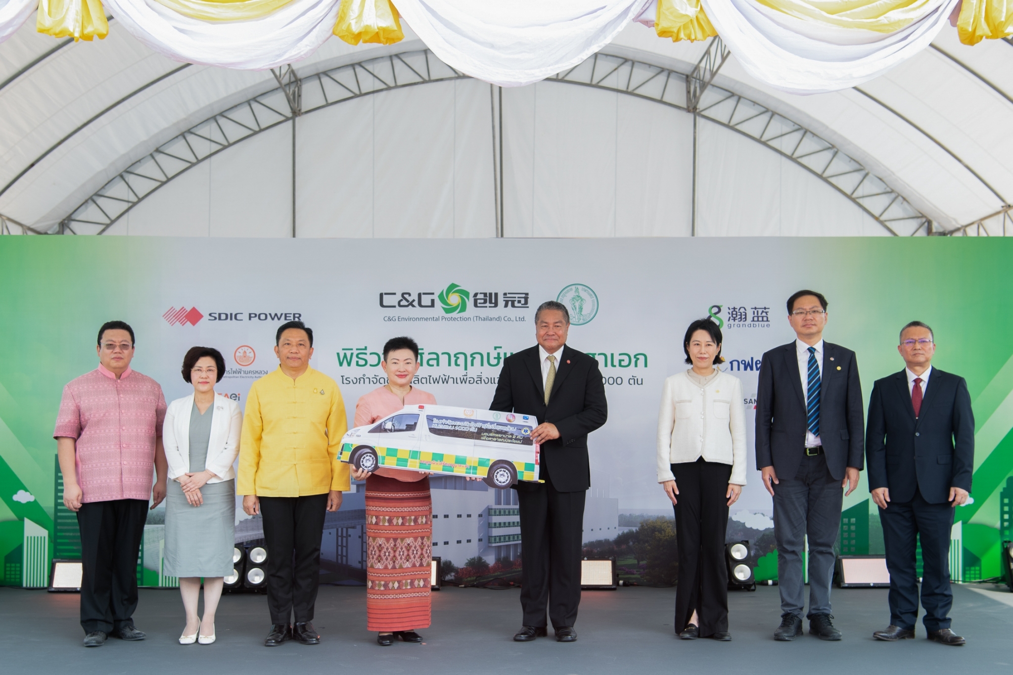 曼谷市政府常务次长Dr.Wantanee Wattana、前代总理Pol Gen Chidchai Wannasathit警上将阁下、前参议院议长Mr.Nikom Wairatchapanich阁下、前三军副总司令Gen.Prasooth Rusmepate、自然资源与环境部常务次长Mr.Jatuporn Buruspat、常务副次长Mrs.Chayanan Pakdeejit、内政部地方政府管理司司长Mr. Kajohn Srichavanotai、清迈府尹Mr. Nirat Pongsitthaworn、曼谷市长顾问委员会主席Mr.Torsak Chotimongkol、泰国中华总商会林楚钦主席、曼谷市议会及环境署、泰国能源监管委员会、工业部、内政部、BOI、泰国国家电力公司、京都电力局等相关部门官员、领导及主要金融机构和社区代表近400人出席项目奠基仪式。
